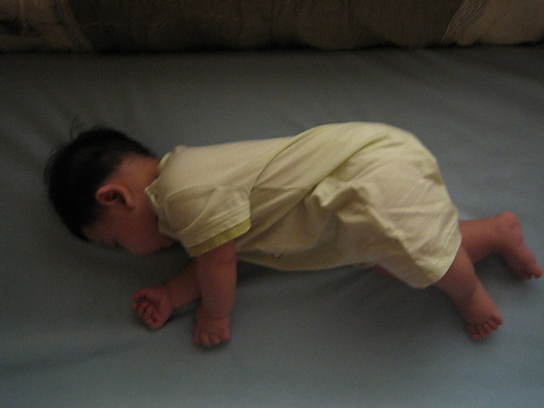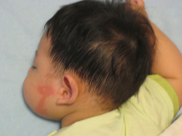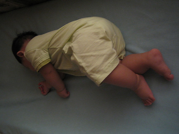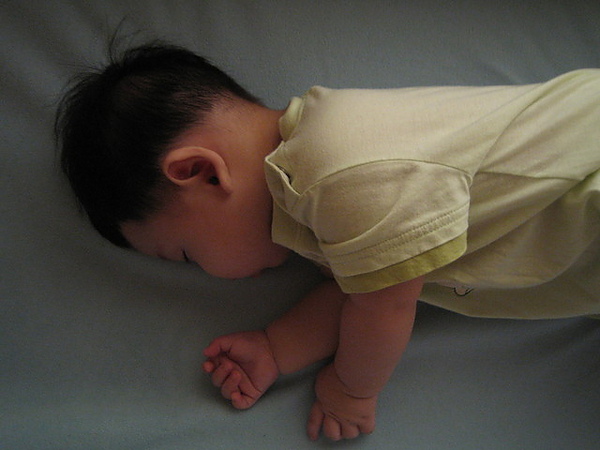 一直都是趴睡的睿霆,難得出現側睡姿勢,