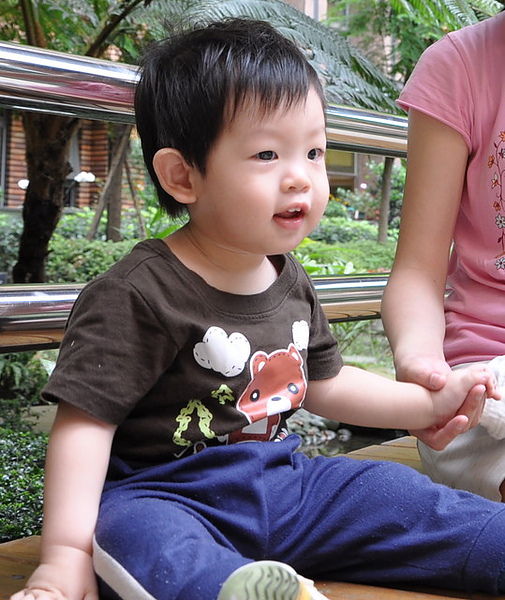 但是爸爸和媽媽帶我到中庭散步.玩遊樂設施和看鯉魚,