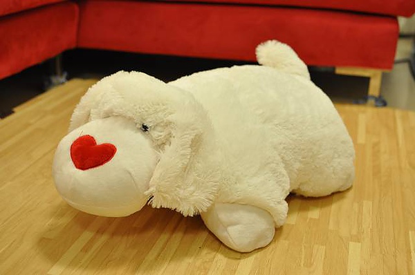 抱枕可變成小狗或是打開攤平變枕頭(摸起來觸感很不錯)