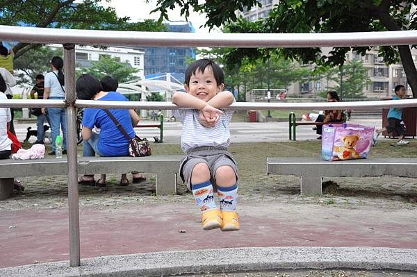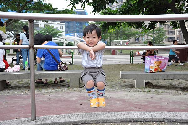 睿霆最近到台茂旁的溜冰場,都會變身成為單槓男孩喔!