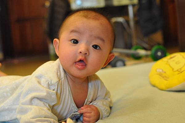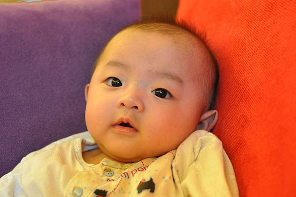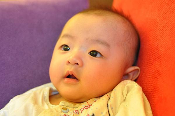 快五個月大的沄蓁,一樣很迷你,頭圓圓的很可愛,但頭髮還太少,