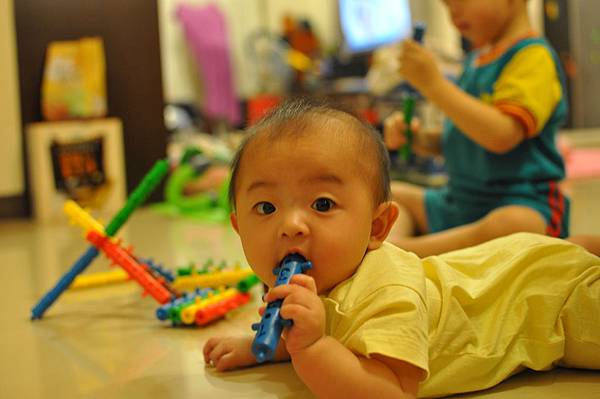 MM看見哥哥在玩,更常爬過去湊熱鬧,真是越來越有趣呢!