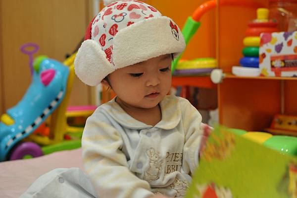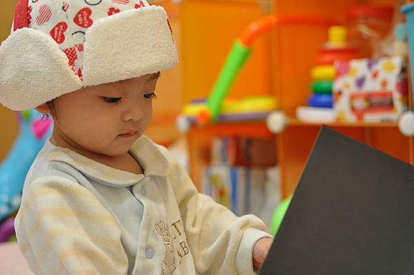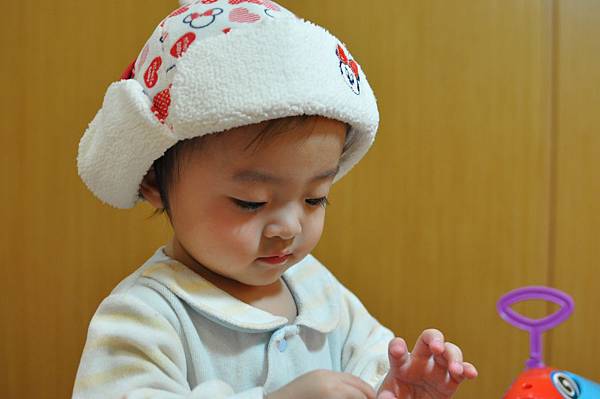 頭上戴的帽子是小阿姨送的生日禮物,可以有兩種變化喔!