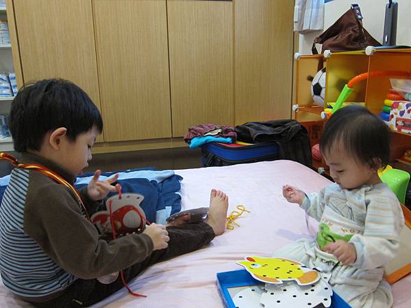 很喜歡追隨睿霆哥哥的腳步,什麼都要跟著學呢!