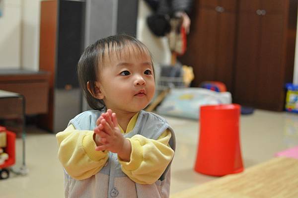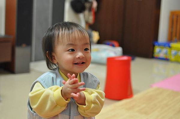 今天的新玩法是滾垃圾桶(客廳的垃圾桶已經很久前就成為裝飾品了),