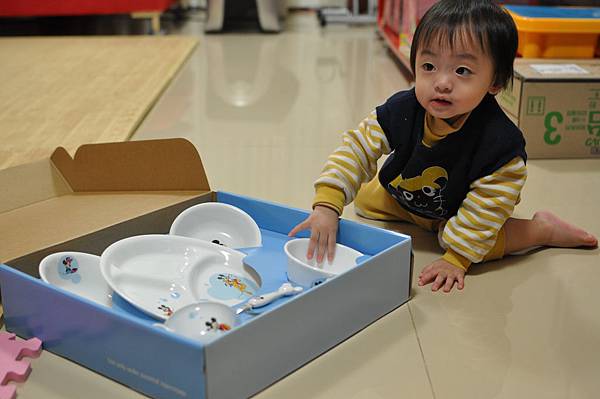 這孩子看到屬於自己的餐具時可開心的呢!