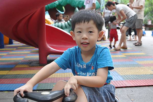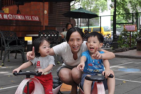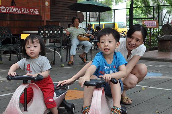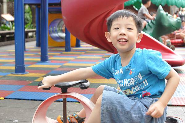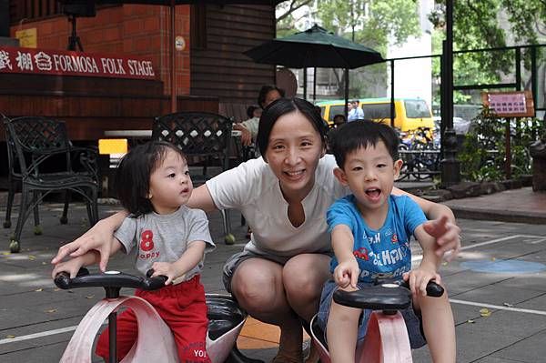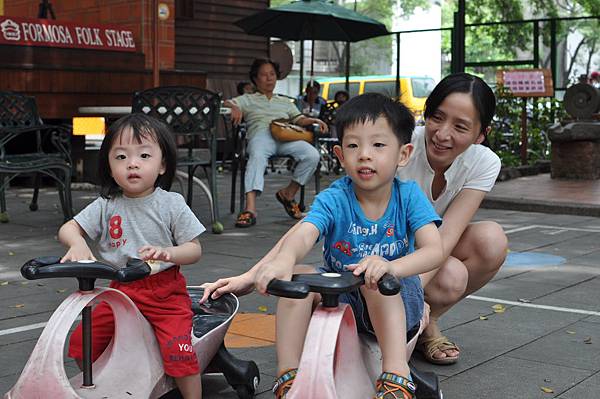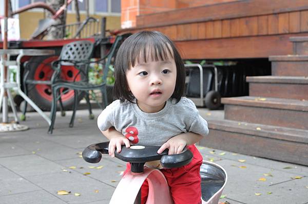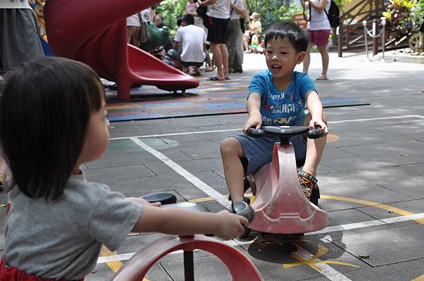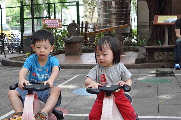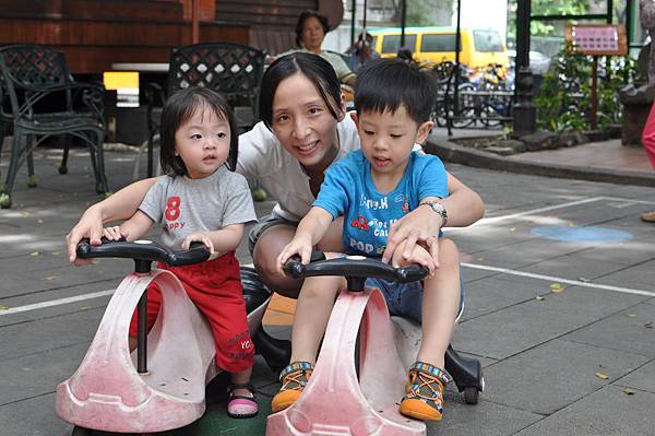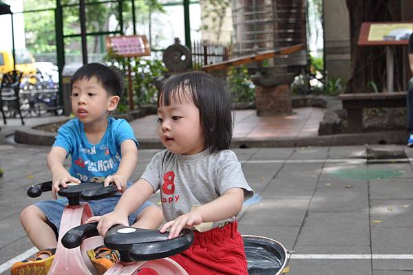 戶外的溜滑梯和車子都讓兄妹倆玩得不亦樂乎呢!
