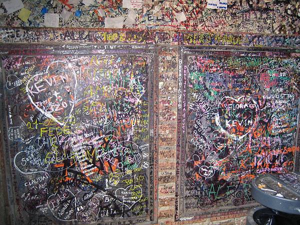 茱麗葉的家整面牆都貼滿或寫滿了字和字條,還有很多口香糖,