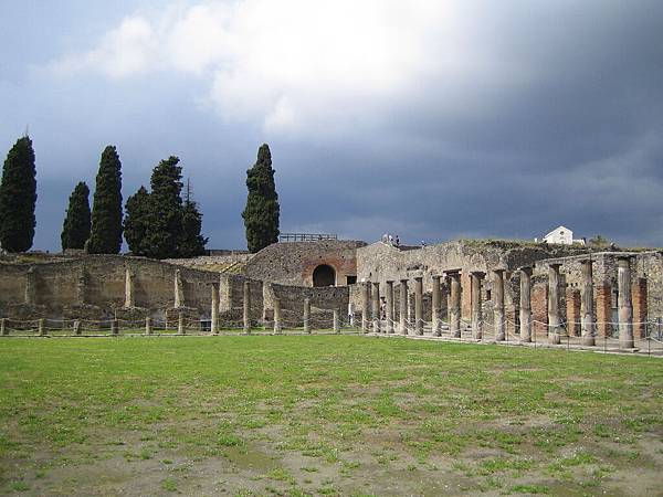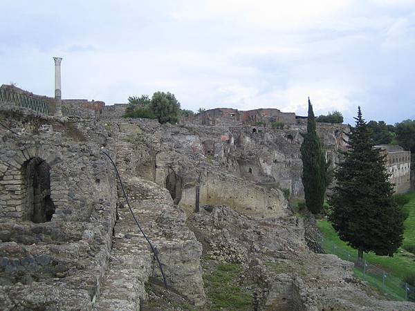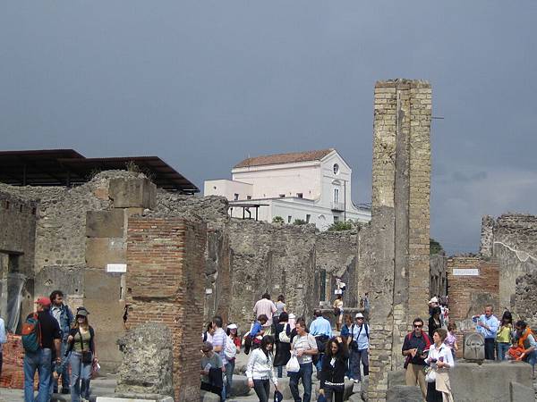 據說龐貝城被埋的高度就在後面那棟白色建築物地平線之下~