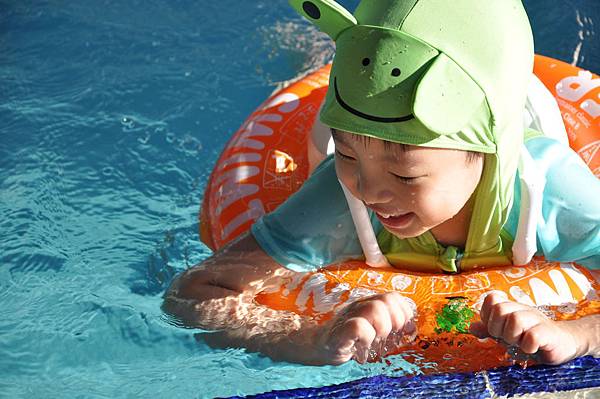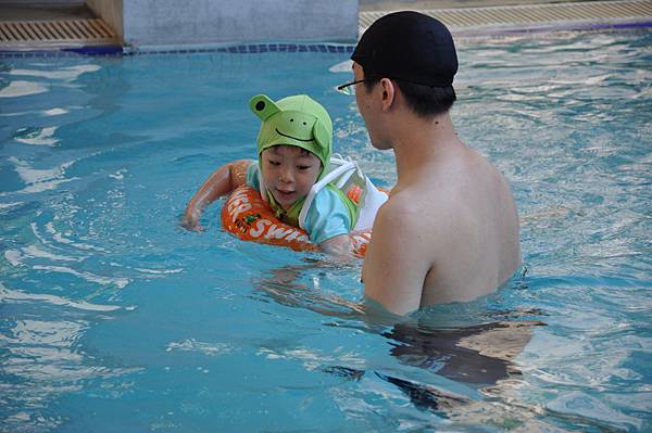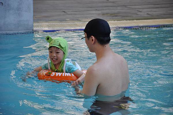 今年首次帶睿霆和沄蓁到社區游泳池戲水,這也是沄蓁的游泳初體驗,