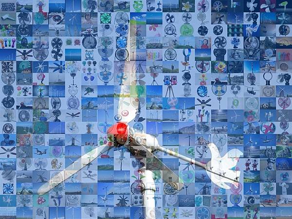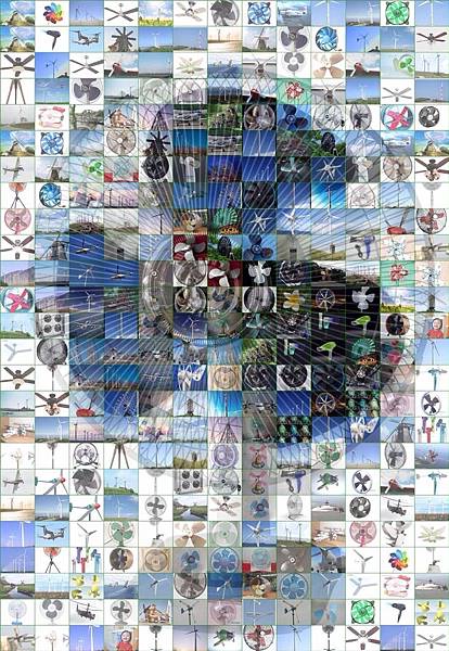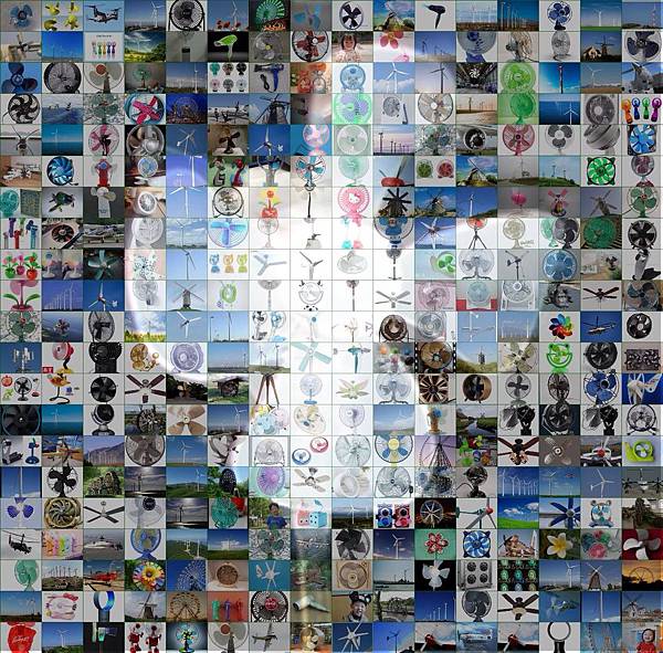 上網抓了許多電風扇的圖片,然後經過多次的排版設計,