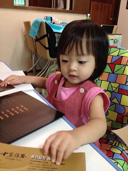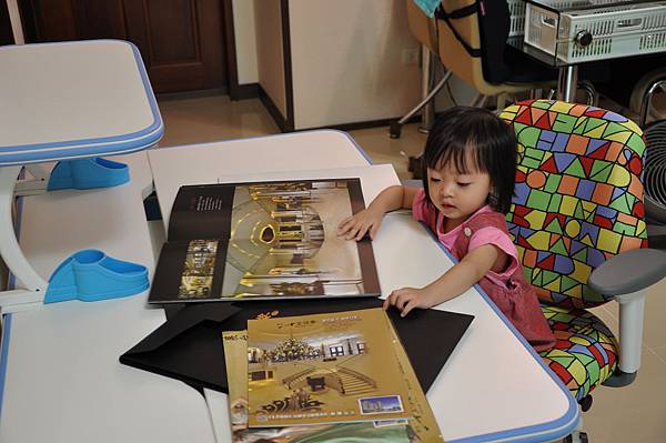 沄蓁MM當個小模特兒,在書桌上盡情地幫小阿姨研究要買的房子呢!