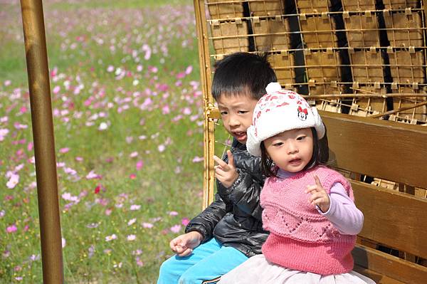 花馬車~可惜陽光讓兄妹倆眼睛都睜不開