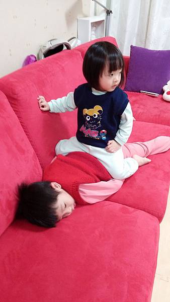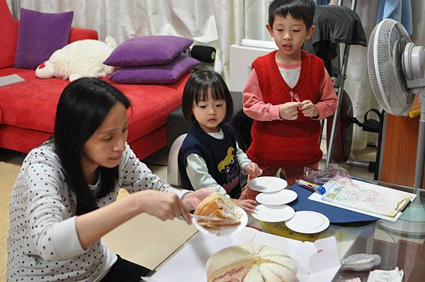 吃蛋糕前還要先來角力一番,哥哥根本被MM欺侮的好玩~