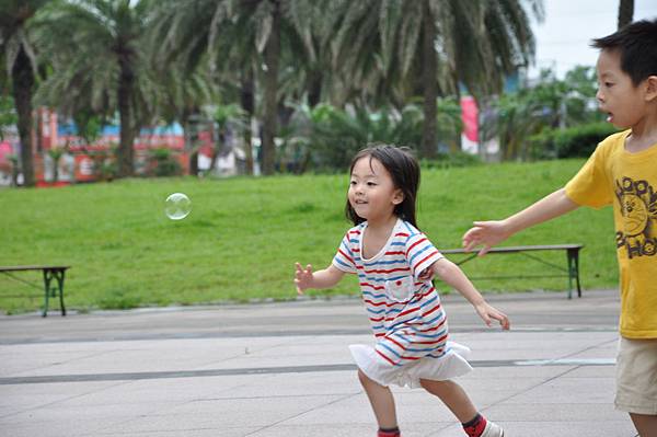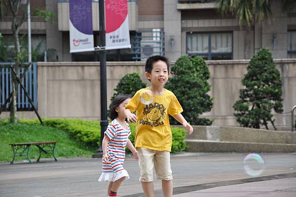 今天趁著好天氣帶著兩兄妹到台茂玩泡泡,