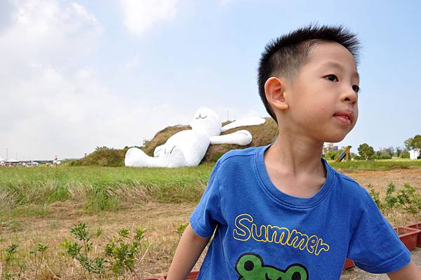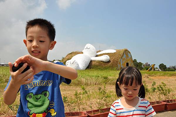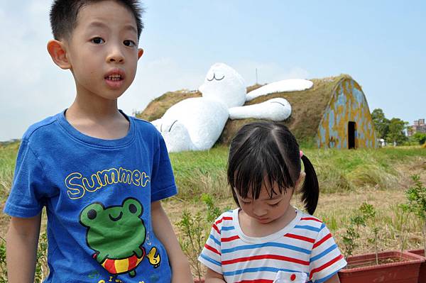所以雖然烈日當空,還是帶著兩兄妹去看月兔了~