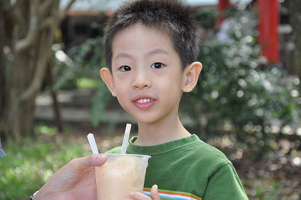 看見一旁的水蜜桃冰沙,馬上買一杯來喝,