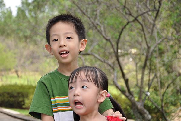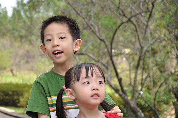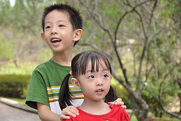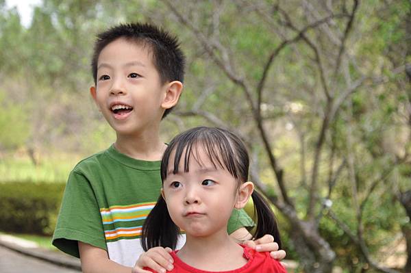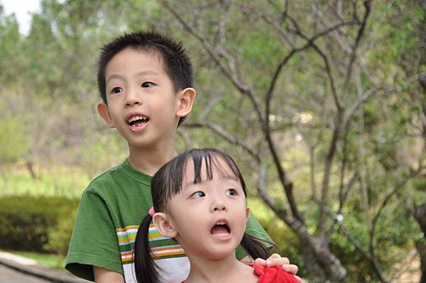兄妹倆第一次看投錢的望遠鏡,瞭望遠方,興奮的不得了呢!