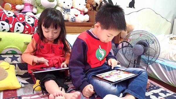 初一下午回台南,睡完午覺起床後,兩兄妹先變成3C兒童~