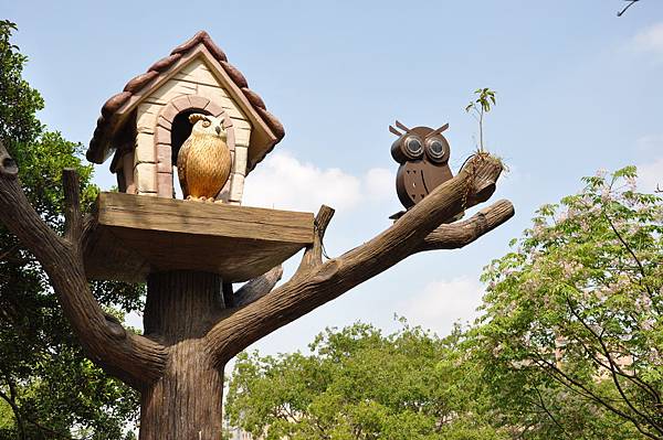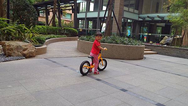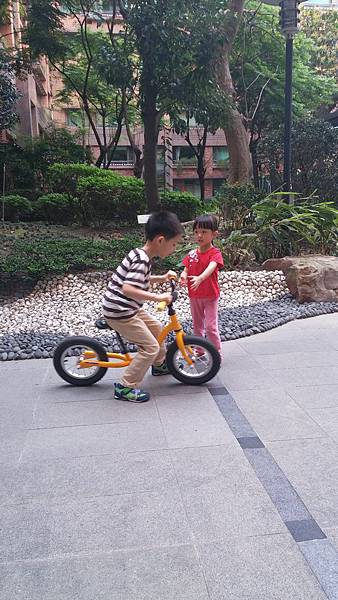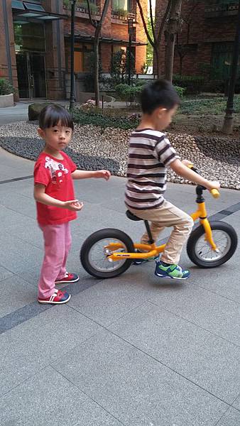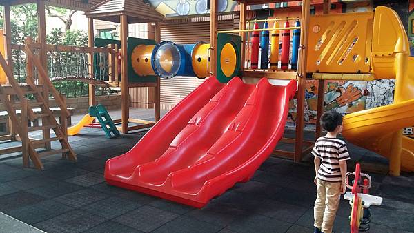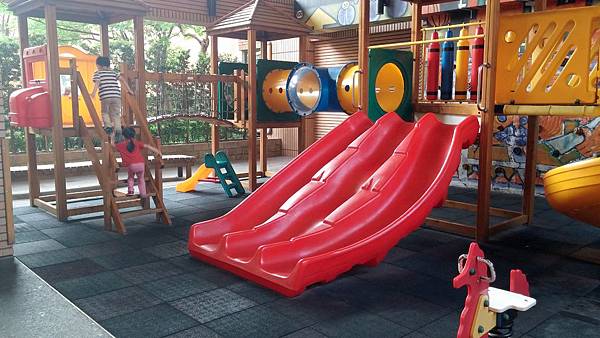 中庭的溜滑梯也能讓兩兄妹玩得很開心呢!