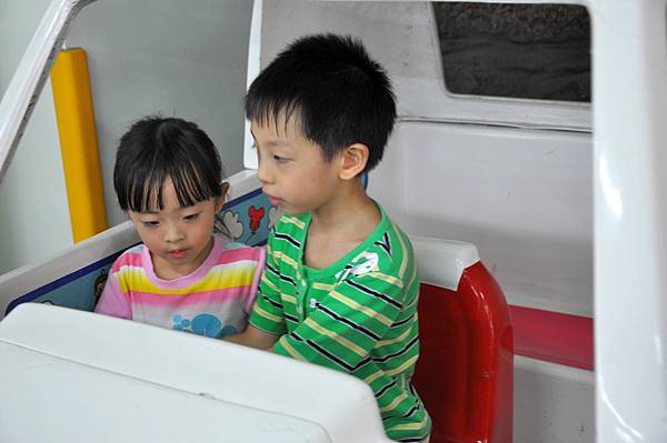 除此之外,一些有趣且可動手的設施讓兄妹倆覺得很新奇,