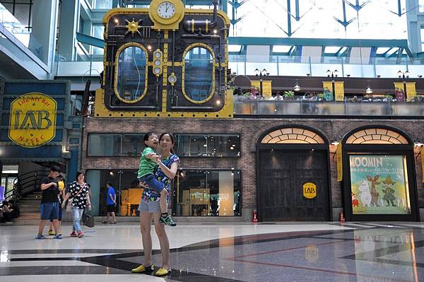 接著,乘坐電梯準備到樓下的室內遊戲區玩耍,