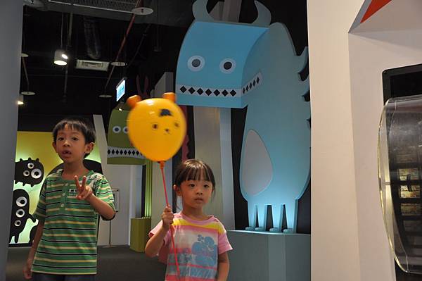 有可愛的氣球可以拿取,兩兄妹各拿一顆,