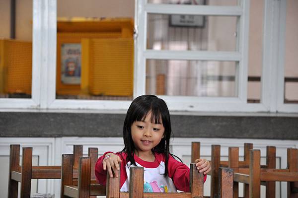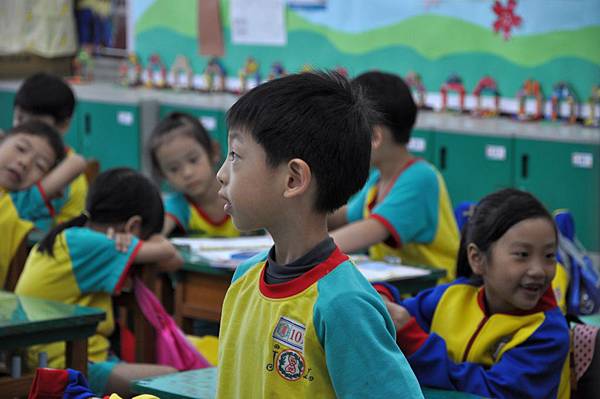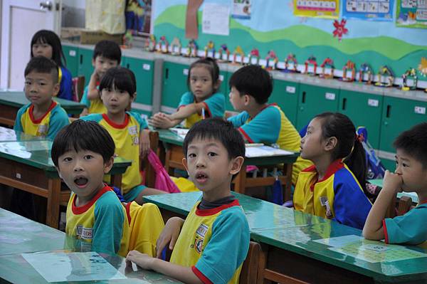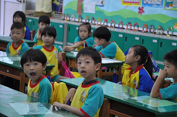 不過MM乖乖地跟著小朋友坐在教室看書.吃飯,還算表現良好啦!