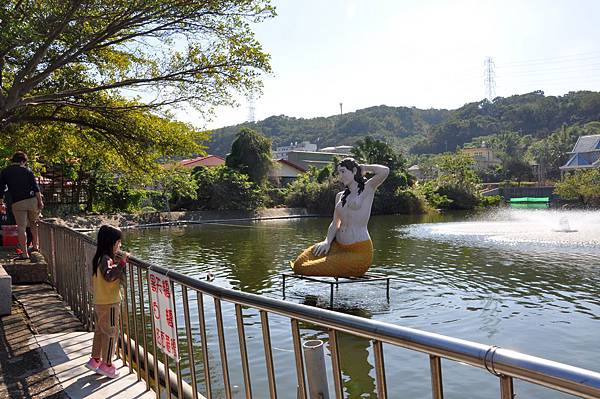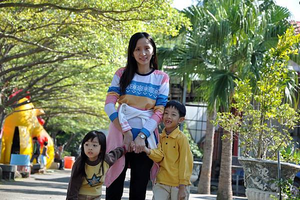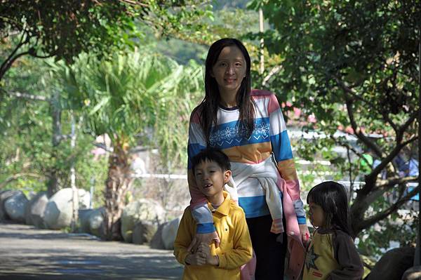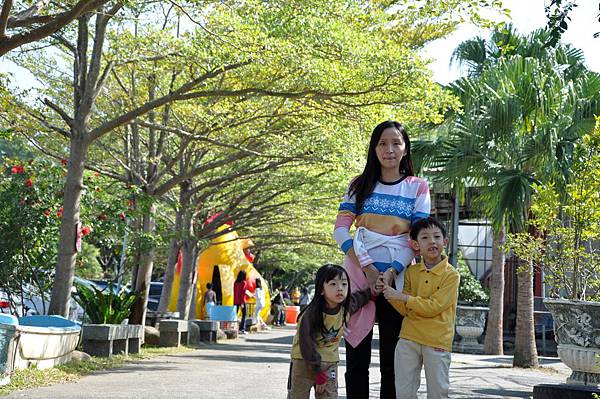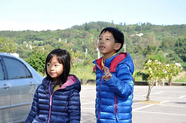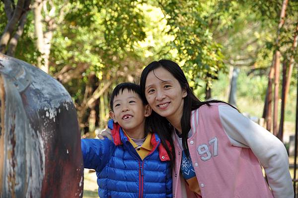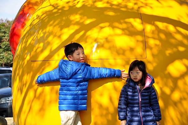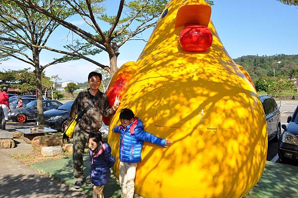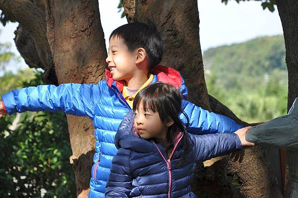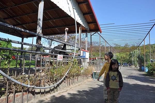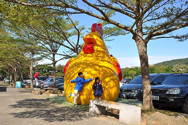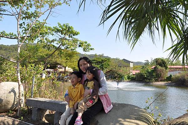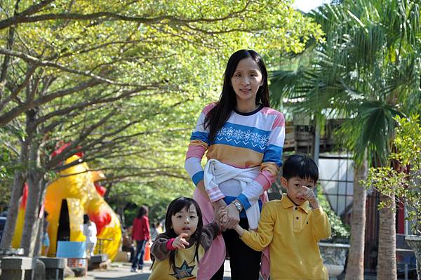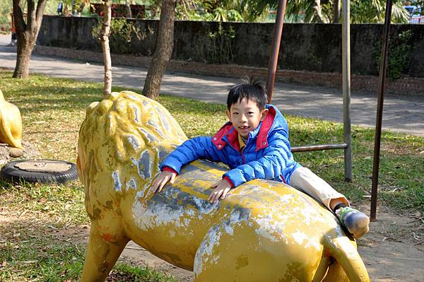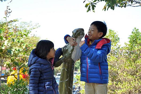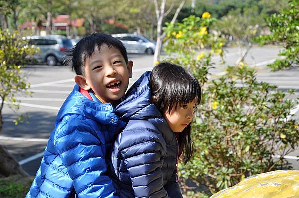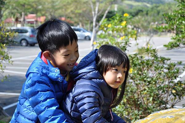 停車場旁的恐龍及動物就讓兩兄妹玩不停~