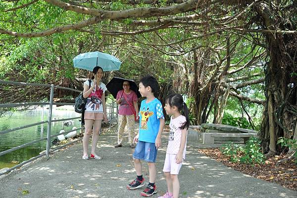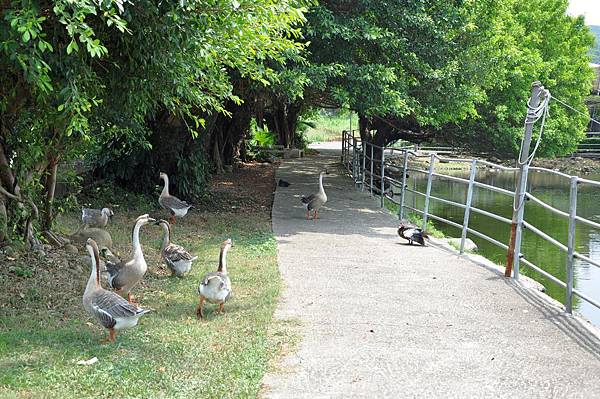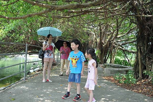 兄妹倆看見鴨子走路的樣子,也學了起來,真是逗趣~