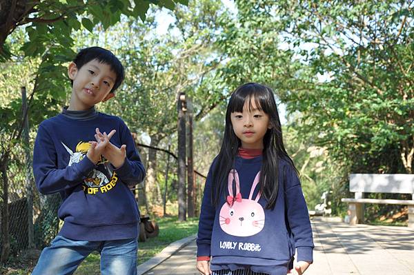 當天兩兄妹穿了同色系的衣服,拍起照來還挺有趣的,