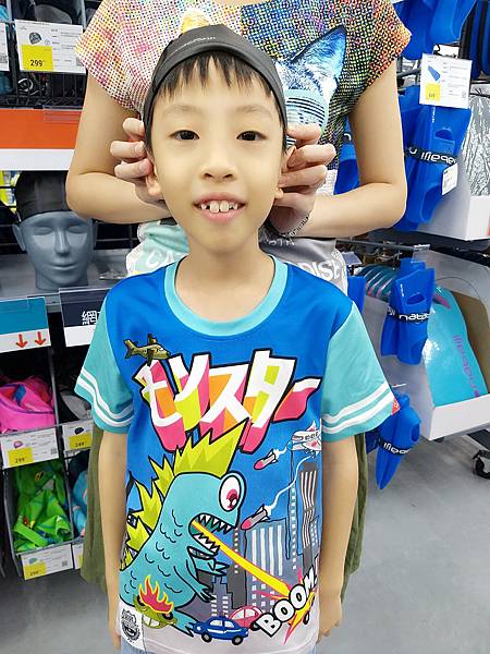 暑假開始要讓睿霆去學游泳,因此添購了新的泳褲及泳具~