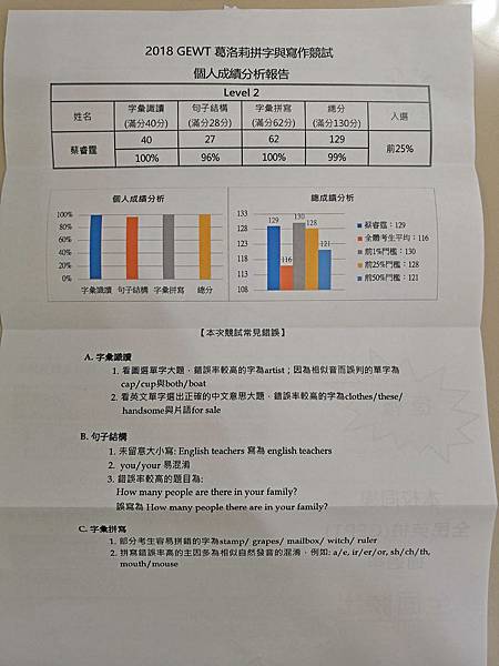 英語班拼字盃競賽獲獎~