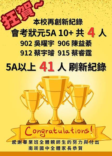 都繳出亮眼的成績單,也不枉費這三年的認真了~