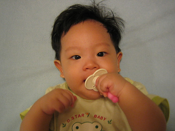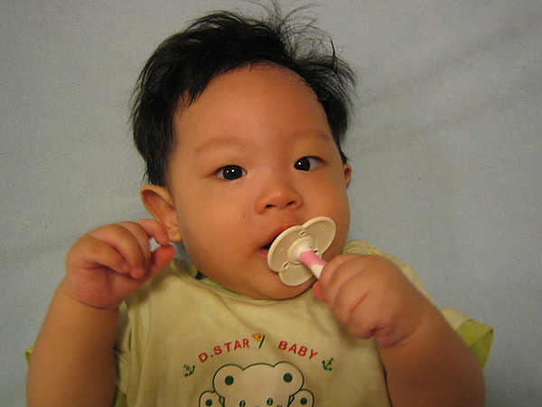 一開始這小子不是咬安全片就是把長的那端塞進嘴巴(他以為他是深喉嚨喔!)