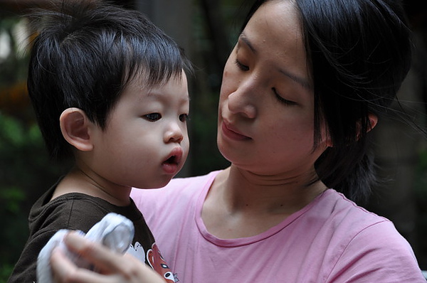 但是爸爸和媽媽帶我到中庭散步.玩遊樂設施和看鯉魚,